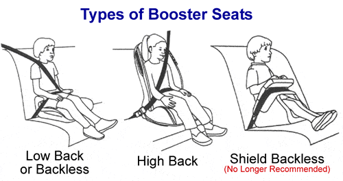 (57 inches). There are 3 types of booster seats, backless,
