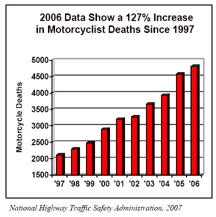 involving motorcycles have increased each year. since 1997