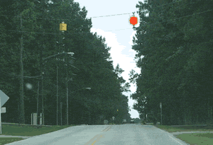 FLASHING YELLOW - SLOW DOWN. Proceed with caution.